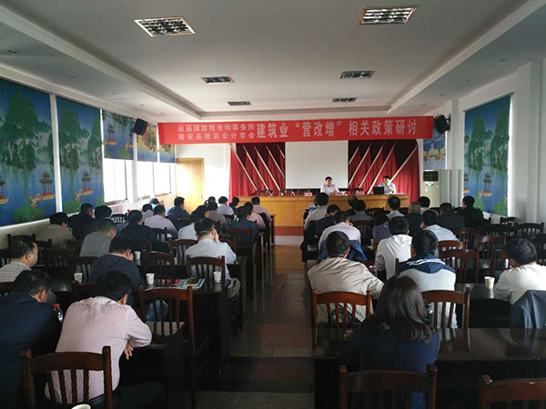 集團公司董事長馬和軍在培訓前做動員講話,他要求集團上下要高度重視“營改增”給建筑行業(yè)帶來的沖擊和機遇,參培人員要虛心聆聽財稅專家的講解,認真學習、理解、適應“營改增”政策,在新的稅制改革起跑線上,要用新的思維、新的架構(gòu),不斷完善新的管理流程,以務實有效的行動積極應對“營改增”。培訓邀請了縣建筑會計學會會長黎勝玉高級會計師、海安縣國稅局稅征科科長劉家健、海安國源稅務事務所所長徐進注冊稅務師等專家,分別從營改增的目的和意義、解讀營改增試點文件及通告、營改增實務及納稅申報等進行了講解。