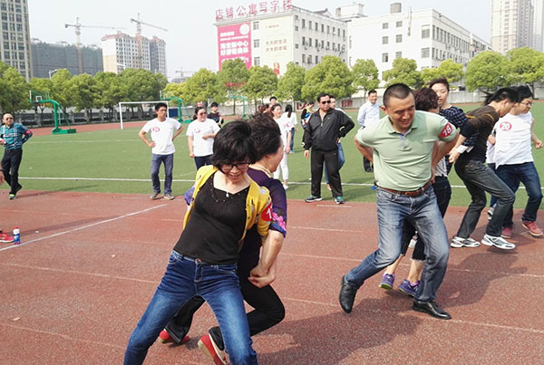為豐富職工的文化生活,樹立運(yùn)動(dòng)健康意識(shí),增強(qiáng)企業(yè)凝聚力,5月14日下午,公司工會(huì)組織26名職工代表,參加了縣建工系統(tǒng)在海陵中學(xué)舉行的2016年職工體育競賽活動(dòng),本次競賽項(xiàng)目分別是:背夾球、跳繩、帶足球繞桿和拔河四個(gè)項(xiàng)目。賽場上,大家各顯身手,頑強(qiáng)拼搏、奮勇爭先,盡情地享受著運(yùn)動(dòng)帶來的樂趣與歡樂,充分展示了達(dá)欣人積極向上的精神狀態(tài)。經(jīng)過激烈爭奪,我公司獲得拔河團(tuán)體二等獎(jiǎng),跳繩和帶足球繞桿分別獲得個(gè)人二等獎(jiǎng)。