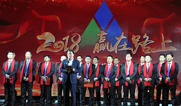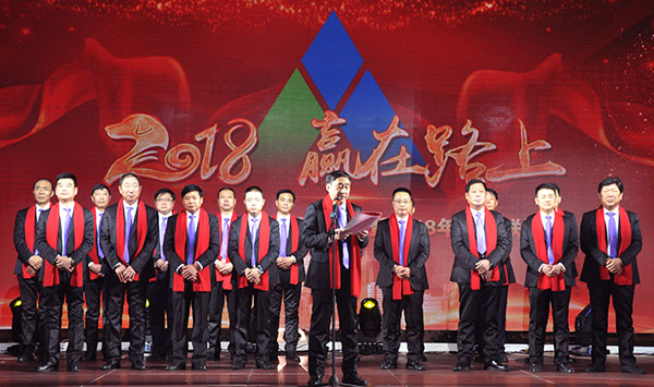 集團高管們在澎湃的“我們走在大路上”聲中激情登場,公司董事長馬和軍進行了致辭答謝。他回顧了集團一年來所取得的輝煌成績,感謝社會各界及全體達欣人的努力,并對公司的未來之路描繪了新的發(fā)展藍圖;接著,縣委書記顧國標發(fā)表講話, 他指出,作為全縣經(jīng)濟社會發(fā)展的重要板塊,我縣建筑業(yè)總體發(fā)展態(tài)勢良好,總量和質(zhì)量穩(wěn)步提升。作為“海安建筑鐵軍”中的一支老牌“勁旅”,達欣集團的市場競爭力和品牌影響力不斷提升,他對公司2018年工作提出了新的希望,寄語未來集團要進一步深化企業(yè)體制機制創(chuàng)新,全面加快產(chǎn)業(yè)升級步伐,全面實施“科技強企”戰(zhàn)略,搶抓機遇,精準定位,打造達欣更加輝煌的未來!