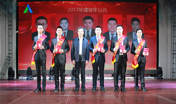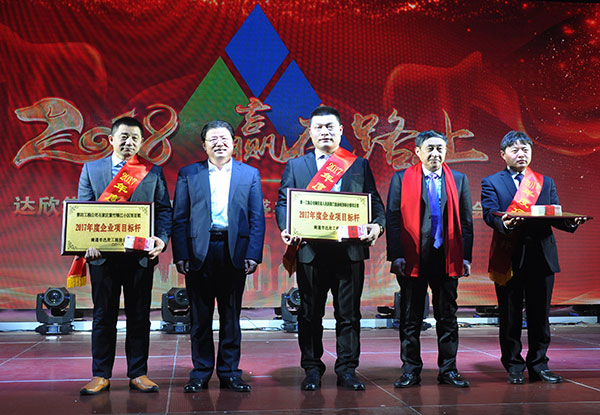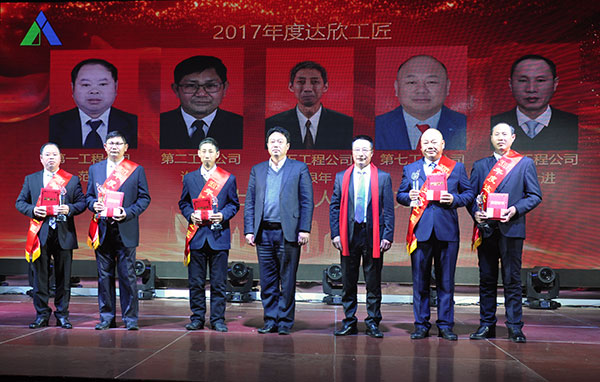 集團黨委書記劉厚純宣讀了表彰決定, 縣領(lǐng)導(dǎo)為獲得集團2017年度的項目標桿、達欣工匠、青年標兵等先進代表進行了頒獎。