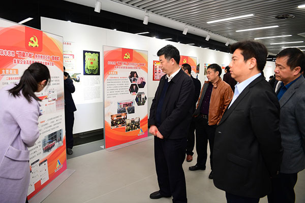在達(dá)欣集團(tuán)企業(yè)展示中心,嚴(yán)長(zhǎng)江一行參觀了“筑牢思想‘四梁八柱’ 爭(zhēng)創(chuàng)燎原工程‘魯班獎(jiǎng)’”主題展板,詳細(xì)了解了企業(yè)黨員冬訓(xùn)工作開展情況,對(duì)黨建工作的創(chuàng)新做法給予了肯定。集團(tuán)董事長(zhǎng)、黨委副書記馬和軍陪同參觀。