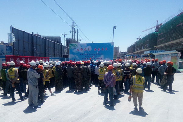 儀式上,君豪輕紡城項(xiàng)目部項(xiàng)目經(jīng)理雷遠(yuǎn)明宣讀了《“安全生產(chǎn)月” 、“安全生產(chǎn)萬(wàn)里行”活動(dòng)》的倡議書和安排部署;生產(chǎn)經(jīng)理盛慶國(guó)針對(duì)當(dāng)前安全形勢(shì)、施工現(xiàn)場(chǎng)的安全隱患結(jié)合事故案例進(jìn)行了教育。最后,工程公司經(jīng)理丁國(guó)東就“安全生產(chǎn)月”和“安全生產(chǎn)萬(wàn)里行”活動(dòng)提出具體要求,要求項(xiàng)目部全體人員迅速行動(dòng)起來(lái),積極抓好安全生產(chǎn)的各項(xiàng)工作,堅(jiān)決杜絕生產(chǎn)安全事故的發(fā)生,確保全年安全生產(chǎn)目標(biāo)的順利完成。
