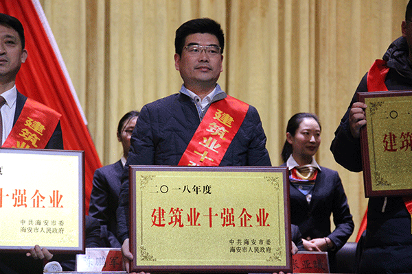 2月11日下午,海安市2018年度總結(jié)表彰大會(huì)在市文化藝術(shù)中心舉行,對2018年度取得顯著成績的757個(gè)先進(jìn)單位和538名先進(jìn)個(gè)人給與表彰。我公司在表彰大會(huì)上一舉囊括七項(xiàng)殊榮: