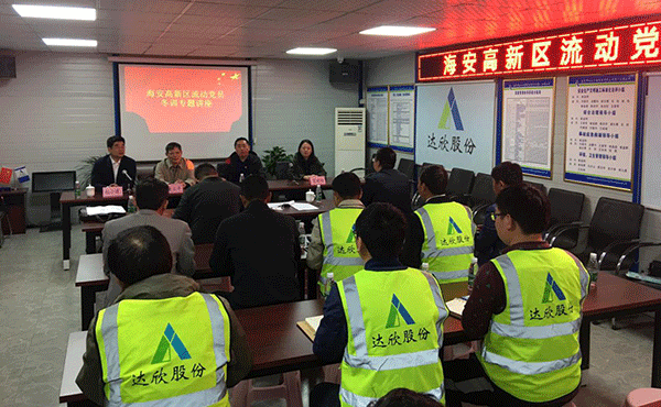 “不忘初心、牢記使命”主題教育開展以來,達欣集團黨委始終抓牢工程項目上的黨員學(xué)習(xí)教育,確保黨員學(xué)習(xí)不掉隊,主題教育落到實處、不留死角,實現(xiàn)基層黨建與項目建設(shè)的同頻共振、互動雙贏,讓黨旗在腳手架上高高飄揚。