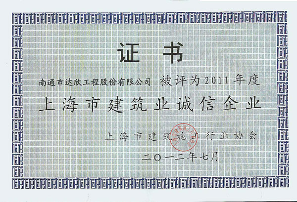 根據(jù)《上海市建筑施工企業(yè)誠(chéng)信建設(shè)行業(yè)評(píng)價(jià)試行辦法》和《上海市建筑施工企業(yè)綜合實(shí)力排名辦法》、2011年度企業(yè)誠(chéng)信建設(shè)相關(guān)考核、《指標(biāo)體系及評(píng)分標(biāo)準(zhǔn)》等內(nèi)容,第一工程公司在經(jīng)過(guò)申報(bào)、初審、征詢(xún)主管部門(mén)意見(jiàn)、上網(wǎng)公示四個(gè)環(huán)節(jié)后,最終由上海市建筑施工企業(yè)誠(chéng)信建設(shè)行業(yè)評(píng)價(jià)委員會(huì)審定通過(guò),榮獲2011年度“上海市建筑業(yè)誠(chéng)信企業(yè)”稱(chēng)號(hào)。這是達(dá)欣股份自易名以來(lái)連續(xù)五年獲此殊榮。此外公司還被評(píng)為2011年度“上海市建筑施工企業(yè)綜合實(shí)力進(jìn)步獎(jiǎng)”稱(chēng)號(hào),承建的萬(wàn)寶國(guó)際廣場(chǎng)項(xiàng)目榮獲2011年度上海市“白玉蘭”優(yōu)質(zhì)工程。