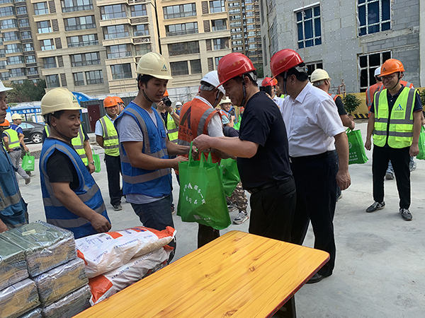 市長于立忠一行為大家送來了毛巾、防暑降溫飲品等消暑物品,感謝大家為建造和諧社會、美好家園在高溫酷暑中依然堅守,為祖國、為家鄉(xiāng)做貢獻,同時也希望大家立足本職工作,繼續(xù)發(fā)揚特別能吃苦、特別能戰(zhàn)斗的主力軍作風,展現新時期達欣鐵軍隊伍特有的風采,并反復叮囑大家一定要安全施工,合理安排作息時間,勞逸結合,保重身體,做好防暑降溫措施。