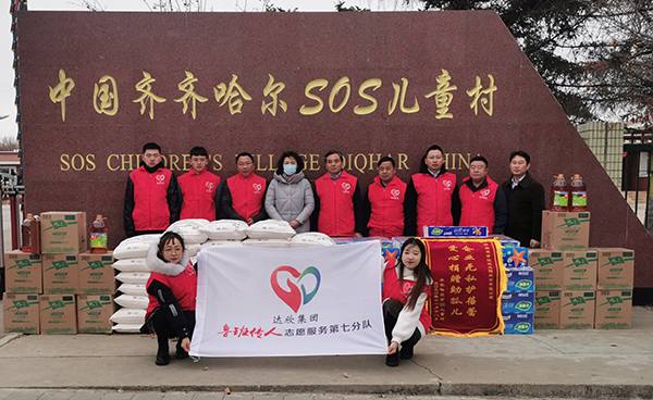 11月19日,達(dá)欣集團(tuán)·魯班傳人志愿者服務(wù)第七分隊(duì)在第七工程公司總經(jīng)理陳貴榮的帶領(lǐng)下來(lái)到齊齊哈爾市SOS兒童村,給村里的孩子們送來(lái)了2000斤面粉,1000斤豆油,100提衛(wèi)生紙等生活物資,以表達(dá)對(duì)孩子們的關(guān)愛和關(guān)心。