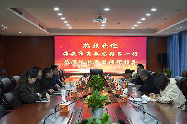 3月3日上午,海安市商務(wù)局黨組書記、局長馮永進,副局長史霞兵一行蒞臨集團開展工作調(diào)研。董事長馬和軍、常務(wù)副總經(jīng)理王邦國等陪同。