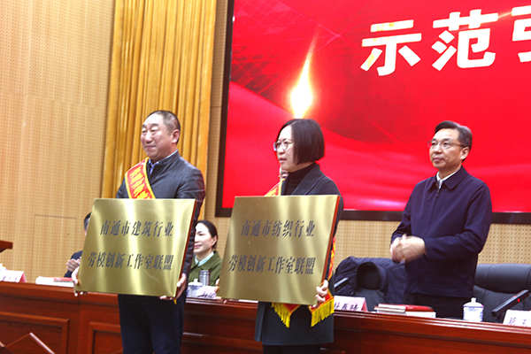 儀式上,對(duì)在開展勞模創(chuàng)新工作室創(chuàng)建和勞模黨支部“薪火工程”系列行動(dòng)中,大力弘揚(yáng)勞模精神、勞動(dòng)精神和工匠精神,充分發(fā)揮勞模在推動(dòng)高質(zhì)量、建設(shè)“強(qiáng)富美高”新南通中起到示范引領(lǐng)作用的先進(jìn)典型進(jìn)行了表揚(yáng),集團(tuán)創(chuàng)建的“馬和軍勞模創(chuàng)新工作室黨支部”被命名“南通市十佳勞模創(chuàng)新工作室黨支部”榮譽(yù)稱號(hào),同時(shí),集團(tuán)副總經(jīng)理、工會(huì)主席溫鶴華還接收了“南通市建筑行業(yè)勞模創(chuàng)新工作室聯(lián)盟”的牌匾。