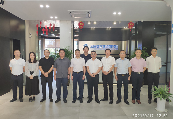 此行的主要目的是學習巨匠集團在BIM技術(shù)、信息化平臺使用、業(yè)財稅資一體化管理、智慧工地平臺建設、項目層面管理等方面先進的理念和做法。巨匠集團副總裁金水根,云匠研究院主任舒成貴帶領我們參觀了云匠研究院展廳,并到施工一線實地了解運行情況,就相關工作進行了深入的探討與交流。