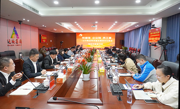 陳琳主持會議,他首先對各位媒體記者的到來表示誠摯的歡迎,在講話中指出:近年來,達欣集團在市場經(jīng)營、深化改革、強化黨建建設(shè)、企業(yè)文化、履行社會責任、促進共同富裕等方面得到了廣泛贊譽和海安市委、市政府的肯定。當前,達欣集團正處在企業(yè)高質(zhì)量發(fā)展的新征程上,希望通過媒體宣傳讓達欣的特色黨建綻放耀眼光芒,讓達欣的精彩故事傳向四面八方,讓達欣高質(zhì)量發(fā)展的動人樂章響徹五湖四海。