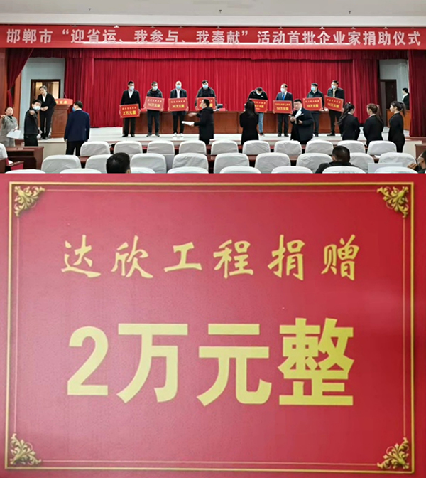 11月29日上午,邯鄲市舉行“迎省運(yùn)、我參與、我奉獻(xiàn)”活動首批企業(yè)家捐助儀式。工程公司副經(jīng)理吉祥代表第三工程公司,為河北省運(yùn)動會捐助2萬元,為省運(yùn)助力,為省運(yùn)助威!