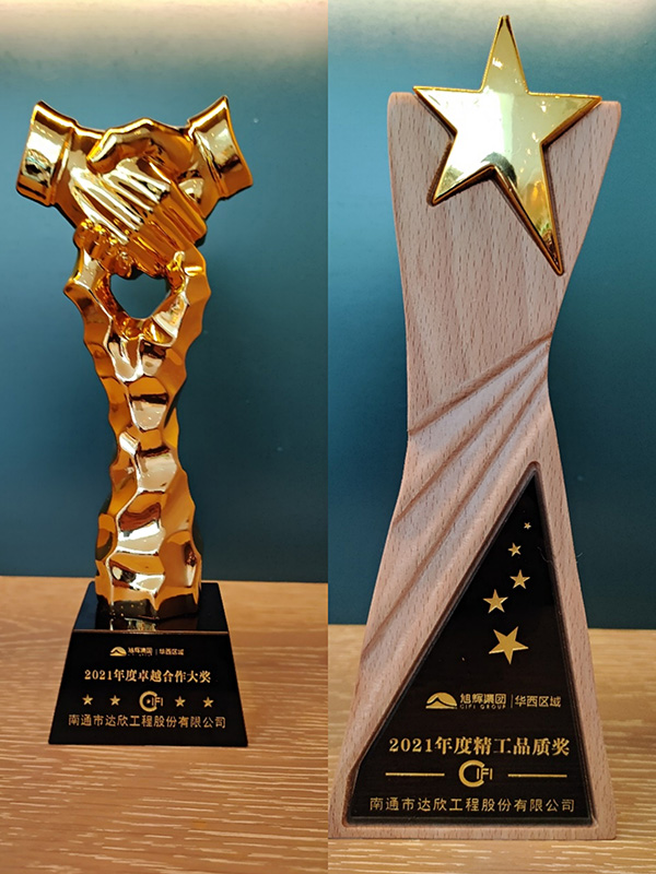 會上,達欣集團以精工的建筑產(chǎn)品、優(yōu)質(zhì)的總包服務、卓越的合作品質(zhì),贏得了旭輝集團的高度認可,獲得“2021年度精工品質(zhì)獎、2021年度卓越合作獎“兩項大獎。