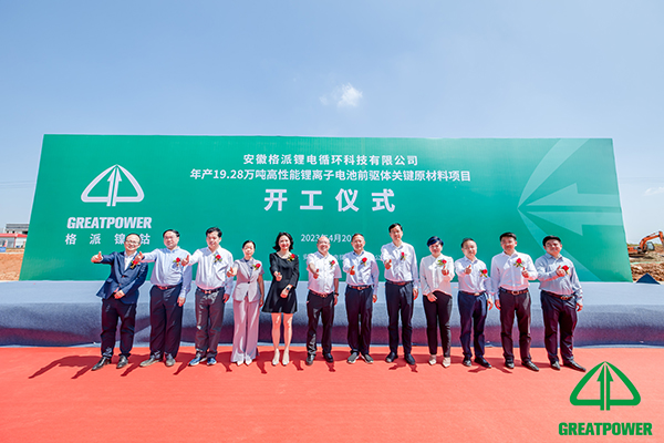 許華為書記宣布安徽格派鋰電循環(huán)科技有限公司高性能鋰離子電池前軀體關(guān)鍵原材料項目正式開工。