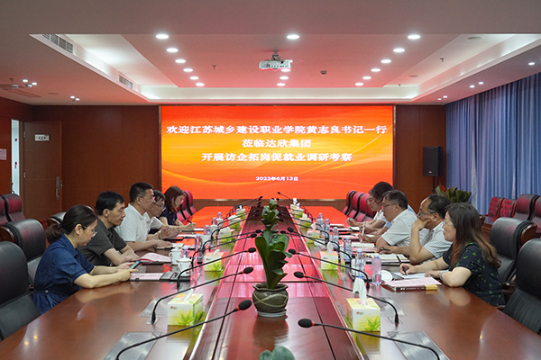 王邦國總經(jīng)理對黃志良書記等校方領導的一行蒞臨調研指導,表示熱烈的歡迎。他結合行業(yè)形勢,就達欣近幾年的發(fā)展情況以及市場開拓、未來發(fā)展等內容作了介紹,他表示,達欣與江蘇城鄉(xiāng)建設職業(yè)學院結緣多年,雙方在理念、共識上有高度的契合點,希望雙方在接下來的合作中,不斷尋找產(chǎn)教融合的新方向和新途徑,共同發(fā)展、合作共贏。