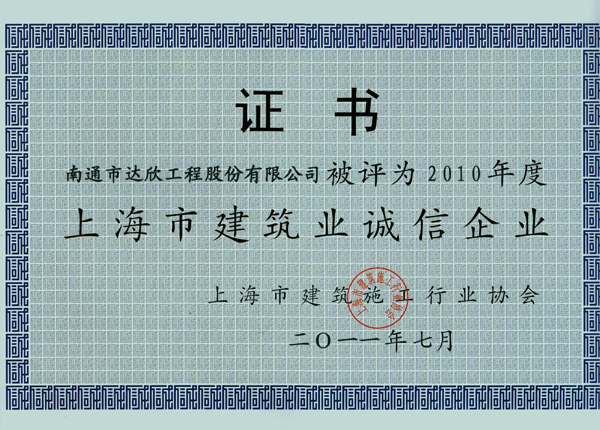 “上海市建筑業(yè)誠信企業(yè)”評選活動由上海市建筑施工行業(yè)協(xié)會組織,每年舉辦一次,宗旨在于不斷推進建筑施工企業(yè)的行業(yè)自律和誠信建設(shè),提高建筑施工企業(yè)的綜合實力,促進行業(yè)健康發(fā)展。第一工程公司在誠信體系建設(shè)中,充分發(fā)揮表率作用,勇當誠信龍頭。通過管理創(chuàng)新,將企業(yè)誠信建設(shè)納入公司經(jīng)營管理的全過程。制定誠信體系、誠信教育管理、誠信承諾管理、誠信評價管理等一系列誠信管理制度,推動誠信建設(shè)工作,創(chuàng)出了較好的經(jīng)濟效益和社會效益,同時,也樹立了達欣公司誠實守信的良好社會形象。