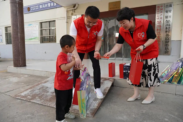 5月31日,在“六·一”國際兒童節(jié)到來之際,達欣集團·魯班傳人志愿服務(wù)總隊來到白甸鎮(zhèn)鄒馮村開展“欣愛童”關(guān)愛行動,集團總經(jīng)理王邦國,黨委副書記陳春紅,團委書記錢美澄參加。
