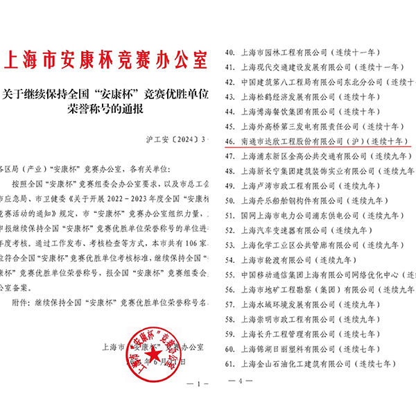 日前,上海市“安康杯”競賽辦公室滬工安【2024】3號文件,對獲得2022-2023年全國“安康杯”競賽優(yōu)勝單位榮譽的集體進行通報,達欣集團連續(xù)十年被評為全國“安康杯”競賽優(yōu)勝單位。