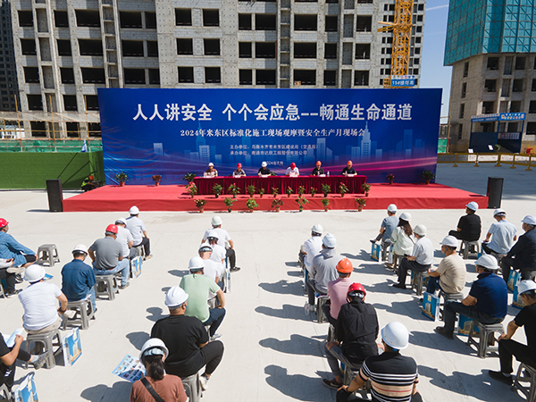 6月20日,由烏魯木齊市米東區(qū)建設(shè)局主辦的2024年米東區(qū)標(biāo)準(zhǔn)化施工現(xiàn)場(chǎng)觀摩暨安全生產(chǎn)月現(xiàn)場(chǎng)會(huì)在第十一工程公司承建的會(huì)展吾悅廣場(chǎng)五期項(xiàng)目舉行。米東區(qū)副區(qū)長(zhǎng)馬連營(yíng),區(qū)應(yīng)急管理局局長(zhǎng)鄒波,區(qū)建設(shè)局局長(zhǎng)、黨組副書記姜磊;卡子灣街道辦事處主任周疆艷,區(qū)質(zhì)量安全監(jiān)督站站長(zhǎng)宮強(qiáng),區(qū)質(zhì)量安全監(jiān)督站全體工作人員,第三方專家以及全區(qū)建設(shè)、監(jiān)理、施工單位負(fù)責(zé)人共計(jì)200余人、60多家建筑施工單位代表參加了此次觀摩會(huì)。