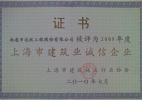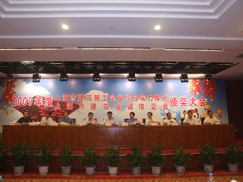 2010年7月30日,2009年度上海市建筑施工企業(yè)綜合實(shí)力及上海市建筑業(yè)誠(chéng)信企業(yè)頒獎(jiǎng)大會(huì)在青松城會(huì)議中心召開。出席會(huì)議的有上海市建委、上海市建管辦、市場(chǎng)管理總站、施工行業(yè)協(xié)會(huì)、各省滬辦領(lǐng)導(dǎo)以及獲獎(jiǎng)企業(yè)共四百多人參加。