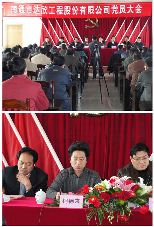 2月20日下午,公司全體黨員聚集在黨員活動室召開南通市達欣工程股份有限公司黨員大會。縣委常委、常務副縣長柯德來、縣人大副主任、組織部副部長章曙東、組織部副部長陳興俊、組織科科長成剛、吉清海、鎮(zhèn)黨委書記盧忠平、鎮(zhèn)長錢亞洲及鎮(zhèn)黨委等領導在百忙之中參加了我公司的黨員大會。這次黨員大會共選舉產生了七位黨委委員:丁興元、馬和軍、劉厚純、陳春紅、徐仁忠、溫鶴華、謝果生,選舉產生了三位紀委委員:王建國、楊靜、徐仁忠。劉厚純任公司黨委書記、馬和軍任公司黨委副書記、徐仁忠任公司紀委書記。