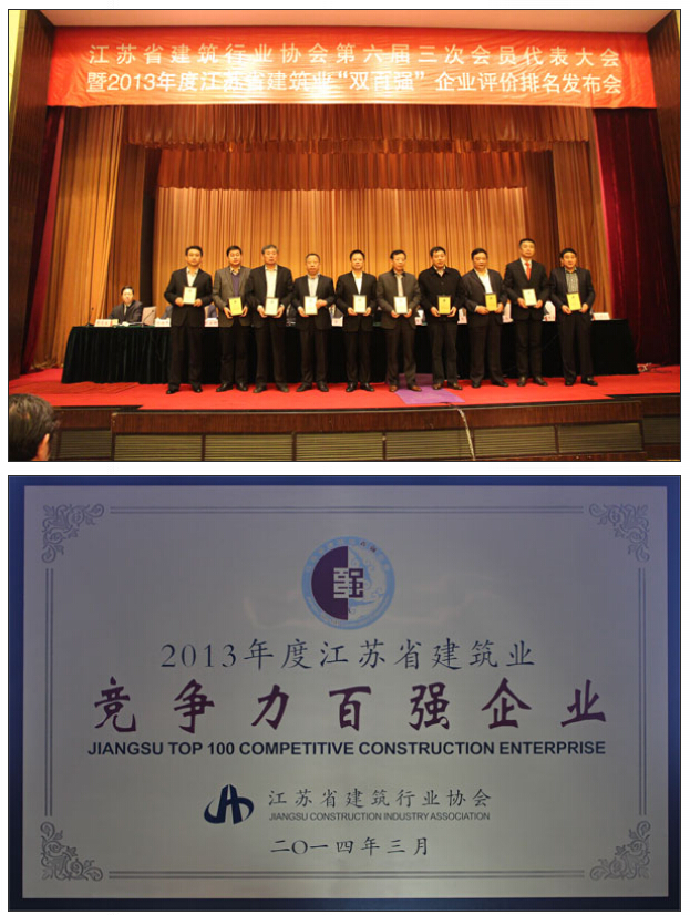 經(jīng)評(píng)審委員會(huì)初審、統(tǒng)計(jì)、公示、核審,南通市達(dá)欣工程股份有限公司入選2013年度江蘇建筑業(yè)企業(yè)競(jìng)爭(zhēng)力百?gòu)?qiáng),排名第35位,與2012年度相比,公司綜合競(jìng)爭(zhēng)力穩(wěn)步提升,公司董事長(zhǎng)馬和軍作為江蘇建筑業(yè)優(yōu)秀企業(yè)家代表上臺(tái)領(lǐng)獎(jiǎng)。江蘇建筑業(yè)企業(yè)“雙百?gòu)?qiáng)”評(píng)比是根據(jù)企業(yè)經(jīng)營(yíng)規(guī)模、資產(chǎn)規(guī)模、盈利能力、員工構(gòu)成、科技進(jìn)步、管理水平、精神文明等八個(gè)指標(biāo)體系綜合評(píng)比產(chǎn)生的,它代表了企業(yè)的綜合競(jìng)爭(zhēng)力水平。