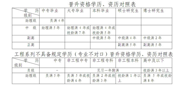 (1)評(píng)審。專業(yè)技術(shù)人員取得初級(jí)專業(yè)技術(shù)資格后,符合下列表中國(guó)家規(guī)定的學(xué)歷、職稱、專業(yè)技術(shù)工作年限的,可申報(bào)評(píng)審晉升相應(yīng)級(jí)別的職稱。少數(shù)專業(yè)破格申報(bào)評(píng)審的,依照該系列評(píng)審條件中破格申報(bào)、評(píng)審條件。