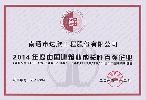 ----公司榮獲2014年度中國建筑業(yè)成長性百強企業(yè)