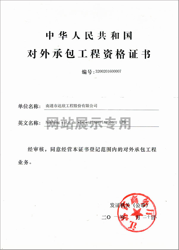 1月28日,公司獲得江蘇省商務(wù)廳頒發(fā)的“對(duì)外承包工程資格證書”,由此為走出國門承接工程、派遣勞務(wù)獲得了市場準(zhǔn)入許可,同時(shí)也為公司積極拓展更大的發(fā)展空間奠定了基礎(chǔ)。這是公司積極策應(yīng)“一帶一路”國家戰(zhàn)略的市場選擇,也是公司面對(duì)新常態(tài)形勢下,我國固定資產(chǎn)投資下滑,國內(nèi)需求增長放緩,建筑業(yè)僧多粥少的產(chǎn)能過剩問題越顯突出的發(fā)展抉擇。